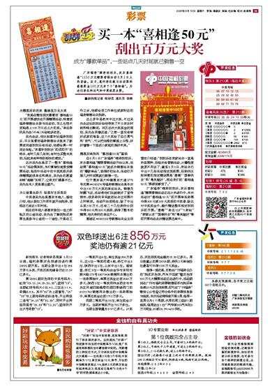 新快报讯 记者陆妍思报道 8月10日晚,福利彩票双色球游戏进行第23092期开奖。当期全国中出6注856万多元头奖,开奖后奖池储备仍达21.39亿多元。