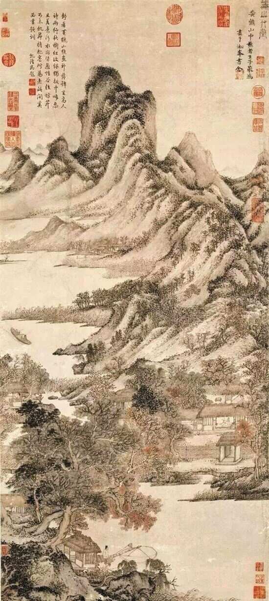 此外,元代的倪瓒与王蒙也分别画了《秋亭嘉树图 》和《秋山草堂图》,倪瓒的画,惟见清竹一撇,疏木几根,几无树叶,直观地看上去就是深秋。常保立分析,几根简笔,竖在横折有数的几叠折带皴上,清零拔石青,为山淡抹。只剩得一人独坐尘边天际,茫茫里愣对空空如也,这是倪瓒的高明。王蒙的画和这正相反,是繁密得不行,可奇怪的是没人因嫌繁而不耐烦,人们也和爱穿倪瓒的风清疏林一样,爱钻王蒙的茂柯群壑,而且进去就不想出来。“长松落落,卉木蒙蒙,也不知自己是在九华山还是青城山,修竹丛碧,势接沉郁,青绿深处亦不知是皖南还是巴蜀,同样乐不可支。这亦是王蒙的高明。计白也当黑,虽花开两朵各表一枝。倪瓒惜墨如金疏中见密,王蒙万笔不烦处处衢通。”