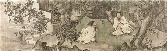 宋代,李唐有一幅非常著名的《采薇图》,在常保立看来,作品画的就是太行山秋意情境。可从画中哪方面能看出呢?他细细分析作品称,画面描绘的是商末伯夷、叔齐不食周粟,隐以首阳山采薇的故事。二人在树下席地交谈,长须墨髯,着宽袖粗服。“从这些地方,似乎难以看出是秋天,但观图中自然布列的几棵乔木以伴有夹叶则立见端倪。松针柏子之间这些阔叶都斫以中钩画法,若是重彩山水就会染以硃砂为秋山红树,当传统丹青图绘衍变渐成以笔藉水赋墨的水墨画时,国人一眼就能看出是秋天的树。”