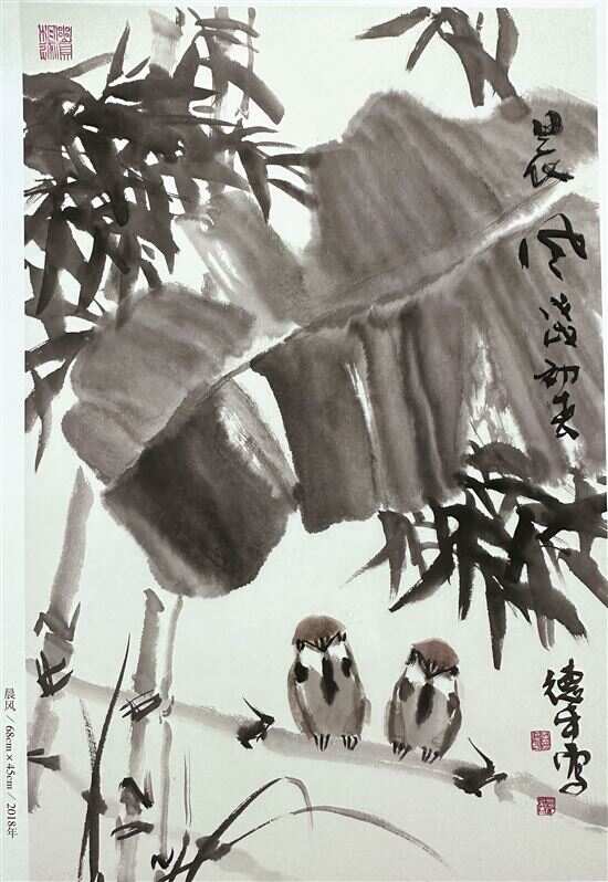 卢德平:我认为,花鸟和书法在笔性的锻炼方面,相比山水更有优势。山水更注重画面气势,花鸟和书法更注重线条、注重疏密穿插等。多摸索书法与花鸟,对山水题材在细节上的处理可以有更好的帮助。山水更注重整体布局、画面氛围和气势,花鸟则着重每一处笔墨的趣味,强调线条的优美。