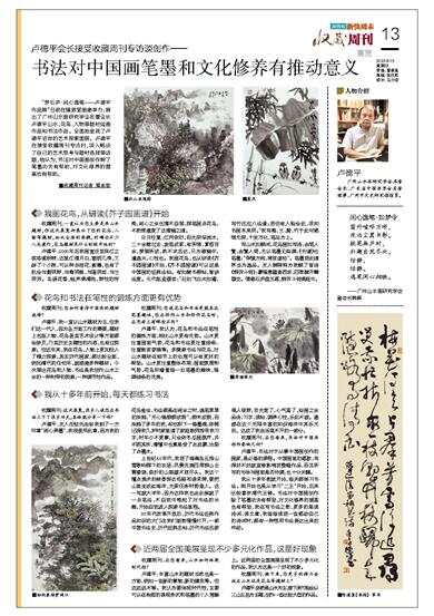 “梦石庐·闲心逸笔——卢德平作品展”日前在臻致堂画廊举办,展出了广州山水画研究学会名誉会长卢德平山水、花鸟、人物等题材绘画作品和书法作品。全面地呈现了卢德平近年的艺术探索面貌。卢德平在接受收藏周刊专访时,深入畅谈了自己的艺术思考与题材选择等话题,他认为,书法对中国画创作除了笔墨功夫有帮助,对文化修养的提高也有帮助。