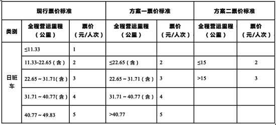 优化内容:全程营运里程小于或等于15公里的线路票价为2元,大于15公里的线路票价为3元。