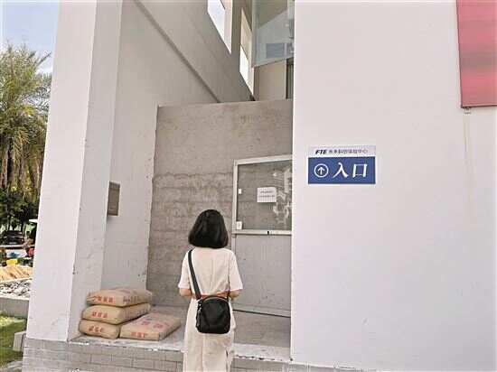 在园区工作人员的指引下,新快报记者终于找到藏身在大厦角落的营地“教学楼”入口——迎宾楼侧楼右侧,一处毫不起眼的楼梯间。还未走进,记者已听到“叮叮咣咣”的凿击声。转入,记者发现紧邻楼梯有一处装修工地,建筑工人正在捣弄水泥和砖块,工地上杂物遍地,并无围蔽。所谓的“教学楼”,必须通过狭长的楼梯进入,无论工地、消防通道,均存在明显安全隐患。