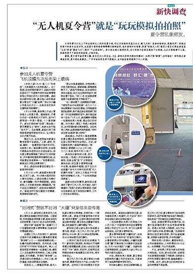 9岁的小易(化名)是个小“科技控”,尤其喜爱无人机和机器人。这个假期,在他的强烈要求下,妈妈为他报名参加了广州蓝湾未来科创运营管理有限公司举办的无人机科创营。易妈告诉新快报记者,最令她心动的是该夏令营主打“大疆”品牌,“我以为大疆公司是主办方之一,这是妥妥的技术支撑和信用保障呀”。