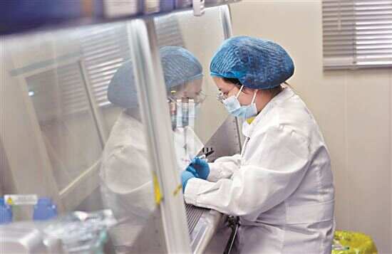 ■细胞生物实验室内,科研人员在进行细胞培养。