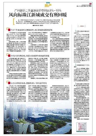 7月二手房成交环比降幅收窄,珠江新城交投氛围好转