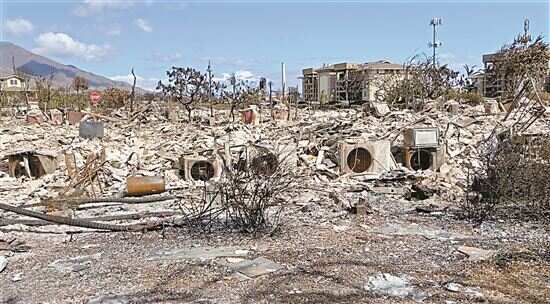 ■美国夏威夷州毛伊岛拉海纳被野火烧毁的残骸。
