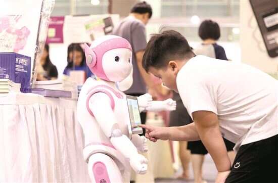 ■一位年轻读者带着“人偶”朋友前来挑选图书。