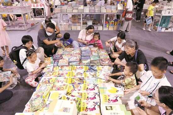 除了家长与孩子,还有不少年轻人来参展。“这本书我上高中那会儿最爱看,现在它还是这么热销。”李先生和张小姐是一对90后情侣,在广州工作生活,趁着周末休息,两人在品牌出版馆逛了很久,边选书边与对方分享自己的阅读故事。“我们阅读的基因和文化是从小存在的。书香节对于我们来说,是一个休闲放松的地方,不仅能够买到一些自己想看的书,还能交流、聊天,让自己放松下来。”