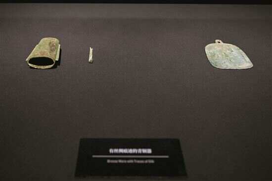 ■在三星堆博物馆新馆拍摄的有丝绸痕迹的青铜器。