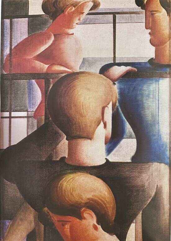 ■施莱默,《楼梯上的群像》布上油画,1931年。这幅画的典型性很强,它体现出了画家的建筑化风格,他把简化的、像玩偶一样的形象布置在一个明确界定的空间里。