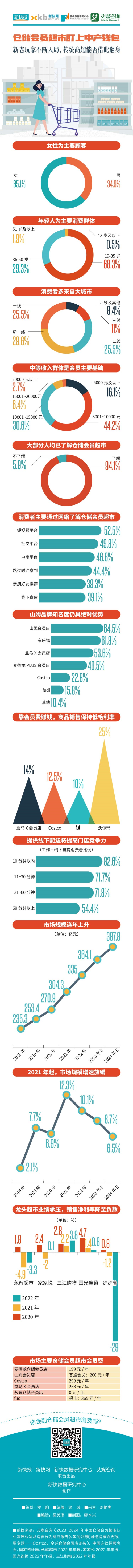 稍早前,艾媒咨询发布《2023-2024年中国仓储会员超市行业发展状况及消费行为研究报告》,报告显示,目前仓储会员超市的主要消费群体为中等收入的新一线家庭,且客群以年轻人居多。该报告亦显示,尽管行业的市场规模在不断扩大,但增速已经放缓,同时国内家庭的小型化或将为中国仓储会员超市的商业模式带来不确定性。