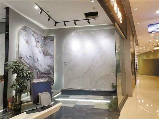 ■一家居卖场的品牌门店,在进门处大面积展示瓷砖大板。