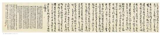 长北:从沈先生书法诗文之中,我感觉渐渐读懂了先生。他孱弱的躯体下常常奔涌着随时将要决堤而出的激情,所以他的诗,感时伤事慷慨多气沉郁痛快直抒人生块垒;所以他的书法,奇崛,奇险又极具情感张力。《自书行草古诗十九首长卷跋》感时伤事的情感基调与《古诗十九首》慷慨多气的情感基调契合,所以,先生写古风最得立意悠远,且与先生奇崛书风最是相合。其诗词并非全部沉郁,而是有的机敏,有的天真,有的轻快,有的喜悦,全面表现出当代社会生活和老年艺术家赤子般的率真。近几年,他每年除夕必书迎春联句用手机短信发我,如,“龙孙吐节存高远,凤羽摩云振大千”,何等胸怀!“金蛇踔厉行空入海,白日熙雍激浊扬清”,何等气魄!真正做到了凌云健笔,意态纵横,我每读每奇每叹其语惊魂魄,哪像耄年之人?