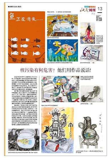 据了解,环保主题早在首届“杨之光杯”的时候就提出,杨之光美术中心对此类课题已经关注十二年。其间,他们一直都比较倡导青少年关注环保生态,尤其是日本福岛核污染。杨之光美术总部校长杨红告诉收藏周刊记者,参与这个主题的青少年集中在小学三年级以上至高中阶段的学生,他们分别从各种书籍、媒体渠道去搜集有关核污染对人类生存环境影响的资料。