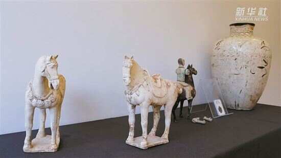 中国驻瑞士大使王世廷代表中方接收了由瑞士联邦文化总局移交的5件中国流失文物。本次移交的文物包括一件明代磁州窑系白地黑花大罐、一件汉代彩绘骑马陶俑、一对唐代白陶鞍马和一枚元代古钱币。