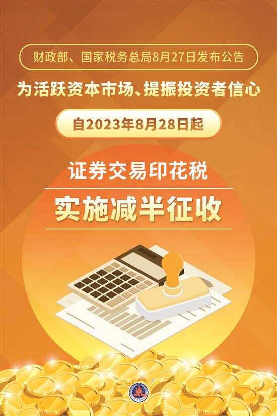 8月28日起,证券交易印花税实施减半征收,手续费由单边收取1‰降低到万分之五。