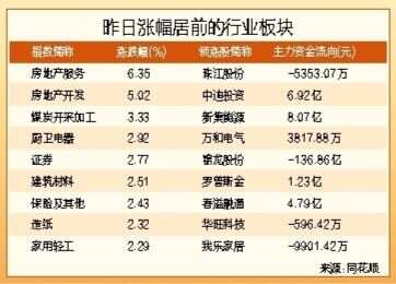 市场成交额显著放大,行业板块多数收涨,房地产开发和房地产服务板块指数涨超5%。据同花顺数据,煤炭开采加工和住宅开发板块昨日资金净流入超5亿元,证券板块主力净流出超130亿元。“牛市旗手”券商股大幅高开后震荡回落,锦龙股份涨停,首创证券、信达证券和中信证券等超20只个股“炸板”。中金公司认为,当前券商板块估值及持仓仍处低位。