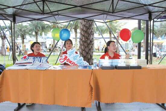 ■林曼停(左一)和卓越班实践队在公益集市上宣传非遗戏剧文化。