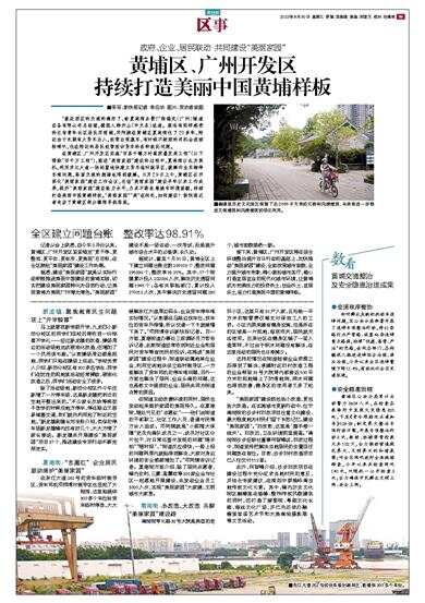 接下来,黄埔区、广州开发区将在综合环境整治提升百日行动的基础上,加快推动“美丽家园”建设,全面改观城市面貌、全力提升城市形象、精心装扮城市客厅,潜心打造宜居宜业的现代化城市环境,让黄埔成为充满活力的投资热土、创业沃土、宜居乐土,奋力打造美丽中国的黄埔样板。