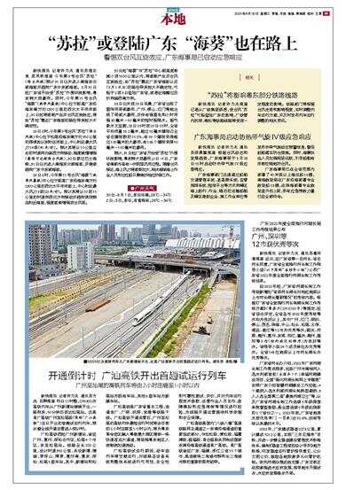 “苏拉”将影响粤东部分铁路线路