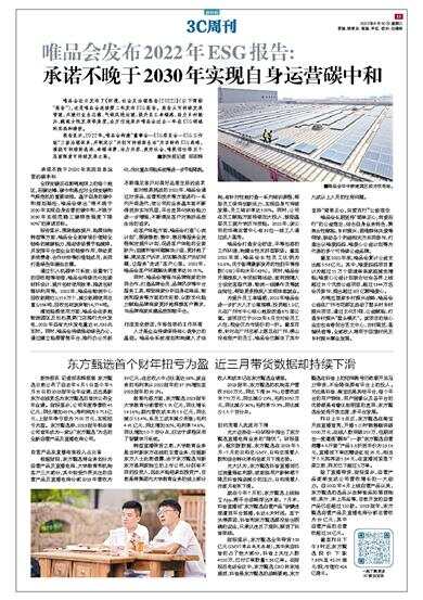 唯品会近日发布了《环境、社会及治理报告(2022)》(以下简称“报告”),这是唯品会连续第二年发布ESG报告。报告从可持续发展管理、共建行业生态圈、气候风险治理、提升员工幸福感、助力乡村振兴、赋能女性发展等角度,全方位地展示唯品会过去一年在ESG领域的实践和绩效。