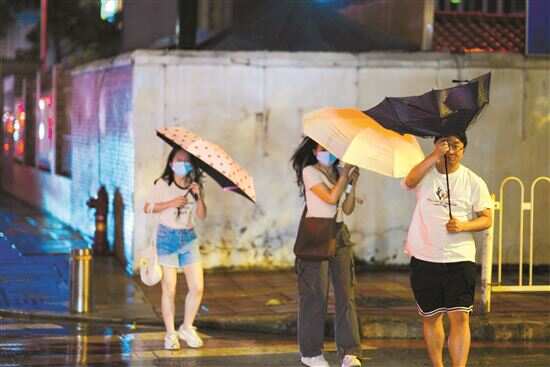 ■9月1日,受超强台风“苏拉”影响,广州出现大风大雨,在黄埔大道,有市民的雨伞被刮翻。 新快报记者 郭思杰/摄