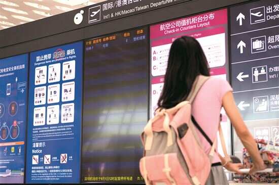 ■9月1日,在深圳宝安国际机场出发厅,旅客查看显示屏。新华社发