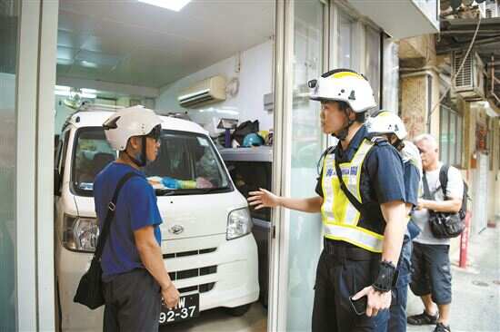 ■9月1日,澳门海关人员劝说低洼地区人员疏散撤离。新华社发