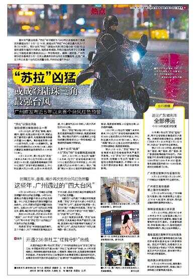 考虑到“苏拉”未来路径偏西南行,且个子偏小,对广州南部的影响远远大于中北部,因此目前仅南沙和番禺发布了台风红色预警。