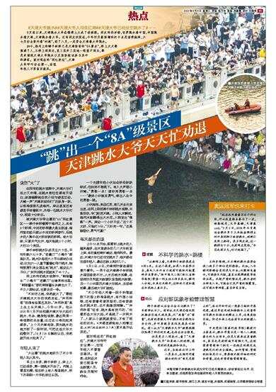 8月底以来,天津跳水大爷在微博上火成了连续剧。网友的热评称,世界跳水看中国,中国跳水看天津,天津跳水看大爷。还有网友玩笑说,今年四月最新潮的打卡点是淄博烧烤,六七月份去贵州看“村超”,到了八月,一定要去天津看大爷跳水。