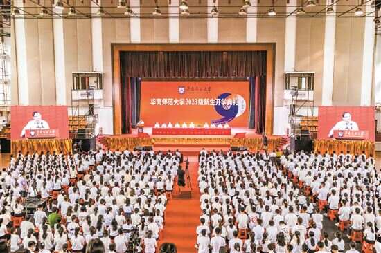 新快报讯 记者王娟 实习生独炘 通讯员王伍 赵頔 成钰报道 唱青春之歌、观《华师赋》、听校长说……9月5日,华南师范大学2023级新生开学典礼广州校区石牌校园、大学城校园、佛山校区南海校园、汕尾校区滨海校园四校园同步进行,14000余名本科生、研究生通过线上线下的方式共同参与到开学典礼中。