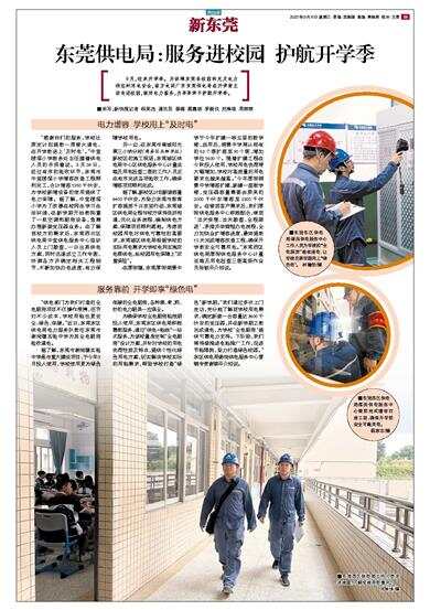 9月,迎来开学季。为保障东莞各校园的充足电力供应和用电安全,南方电网广东东莞供电局在开学前主动走进校园,做好电力服务,为莘莘学子护航开学季。