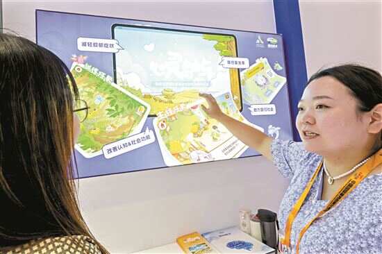 ■9月4日,在首钢园健康卫生服务专题展区,工作人员在北京安定医院展台讲解基于AI的抑郁症辅助治疗系统。
