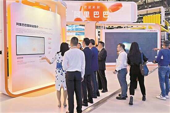 ■在服贸会国家会议中心展馆阿里巴巴展台,阿里巴巴国际站有关负责人作产品介绍。