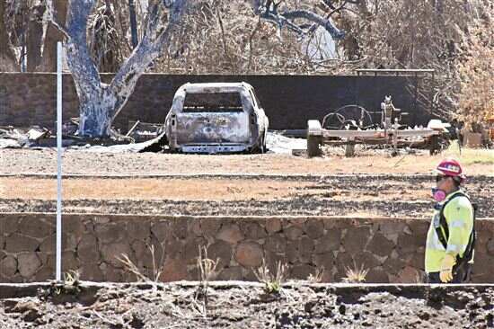 ■8月22日,工作人员在美国夏威夷州拉海纳镇进行修复工作。 新华社发