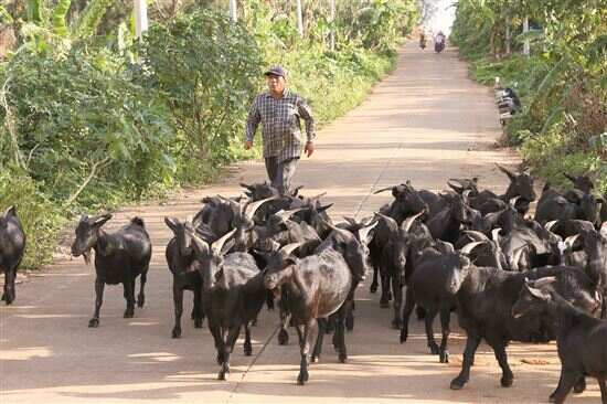 “咩咩咩……”硇洲镇北港村委会那凡村的一块草地上,一群黑山羊正在悠然地吃草、嬉闹,看着它们个头越长越大,那凡村村长豆兴文露出了舒心的笑容。