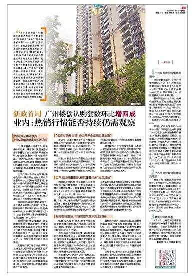 肖文晓指出,对于开发商而言,虽然部分楼盘在新政后有发布“折扣即将回收”的海报,但是并无实质性的动作,主要还是为了促进在售特价单位的出货。目前,广州新房可售库存达到11万套、去化周期在19个月左右,二手房挂牌量也在历史高位水平,“去库存”依然是当前广州楼市的“主旋律”,后续成交回升后价格会趋于平稳,但出现异动的可能性并不大。