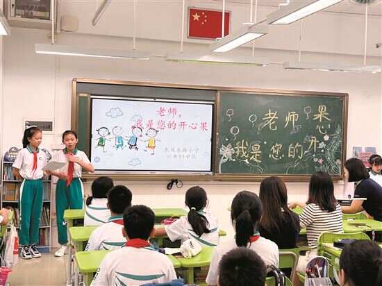 ■为庆祝教师节,东风东路小学的同学们表演小品为老师送上节日祝福。