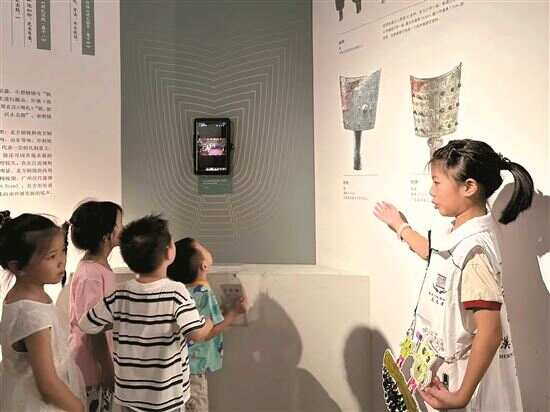 ■小小志愿者陈楚菡正在向小观众们介绍西汉铜铙。 潘玮倩/摄