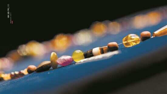 ■南汉二陵博物馆2022年临展“只此绚丽”的一件展品,这串宝玉石珠串,包含金、玉、水晶、绿柱石、琥珀、玛瑙、红玉髓、绿玉髓、石榴子石、玻璃10种材质,共114颗,色彩绚丽,夺人眼球。由于珠饰都比较小,肉眼看细节相对来说比较费劲,通过镜头拍摄不同的细节,将其呈现在观众面前,让观众更加直观感受到为什么是“精美之最”。——欧阳威。受访者供图