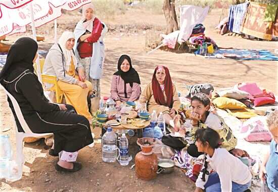 ■9月10日在摩洛哥震中附近的艾米兹米兹村一处临时安置点拍摄的受灾群众。 新华社发
