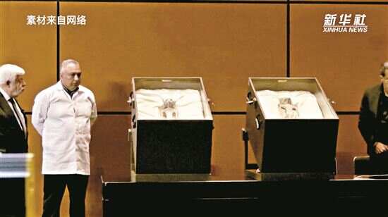 ■两具“干尸”分别被装在木箱中。新华社发