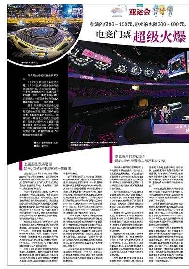 9月23日,杭州亚运会正式开幕。9月24日,杭州亚运会的电竞项目即将打响。在亚运会开幕前一个多月,赛事的相关门票就已经开始销售。其中,门票销售情况最好的项目是上一届亚运会才刚刚进入赛事的智力项目——电子竞技。