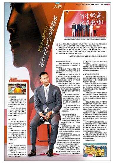 在舞台上,姚明代表中国篮球协会对易建联献上祝福,并向易建联赠送了一幅和篮球球场等比例的3D相框,包含了他21载篮球生涯留下的精彩瞬间。