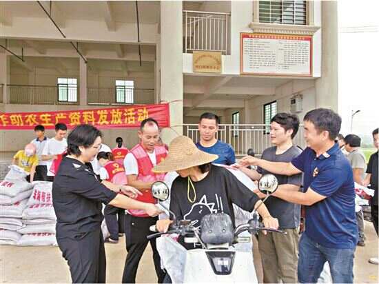 ■岭门镇向脱贫户免费发放有机肥等生产资料。
