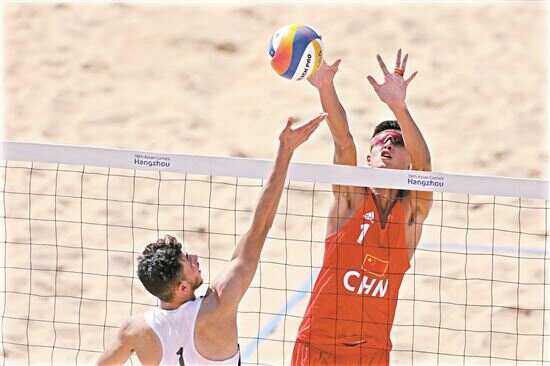 沙滩排球比赛在宁波半边山沙滩排球中心开赛,中国队共进行了三场比赛,均取得胜利。