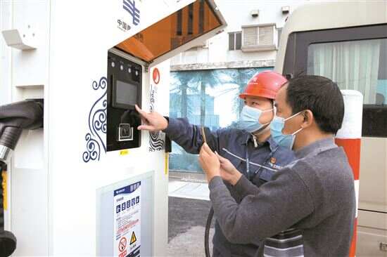 广州增城供电局工作人员现场引导用户使用充电桩。
