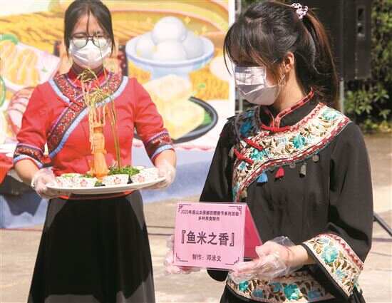 煎、炸、蒸、炒绝活齐上演,大米与各类食材碰撞,激发出多层次的特色香味,刺激观众味蕾……9月19日上午,2023年中国农民丰收节连山太保镇稻香节系列活动之乡村米食制作品鉴大会在太保黑山村粤菜师傅培训基地成功举办。20多名当地饮食类美食家、“厨艺高手”齐聚一堂,开启了一场舌尖上的盛宴,以米食文化赋能“百县千镇万村高质量发展工程”。