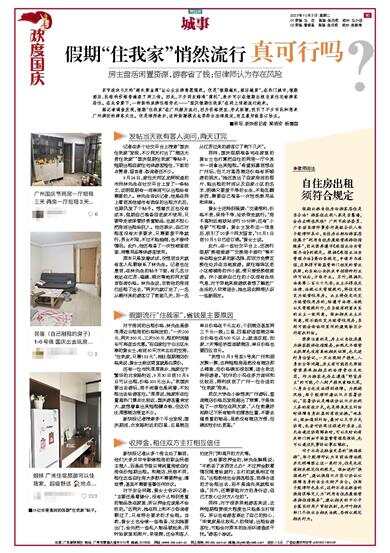 据记者调查发现,假期“住我家”在广州颇为流行,因为价格便宜、形式新颖,吸引了不少市民和想来广州游玩的游客关注。但是律师表示,这种新颖模式也要符合法律规定,而且最好能签订协议。